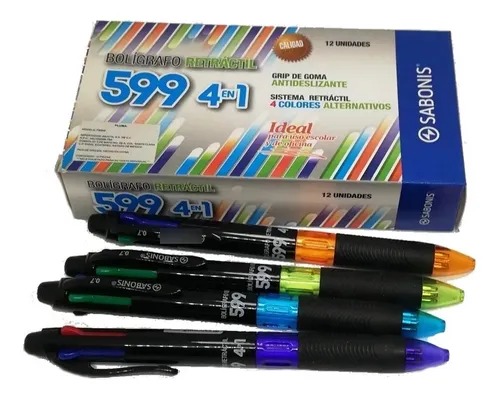 Bolígrafo de 4 colores de 0.7 mm con clip y grip de goma, Acción retráctil ideal para todas sus necesidades de escritura .